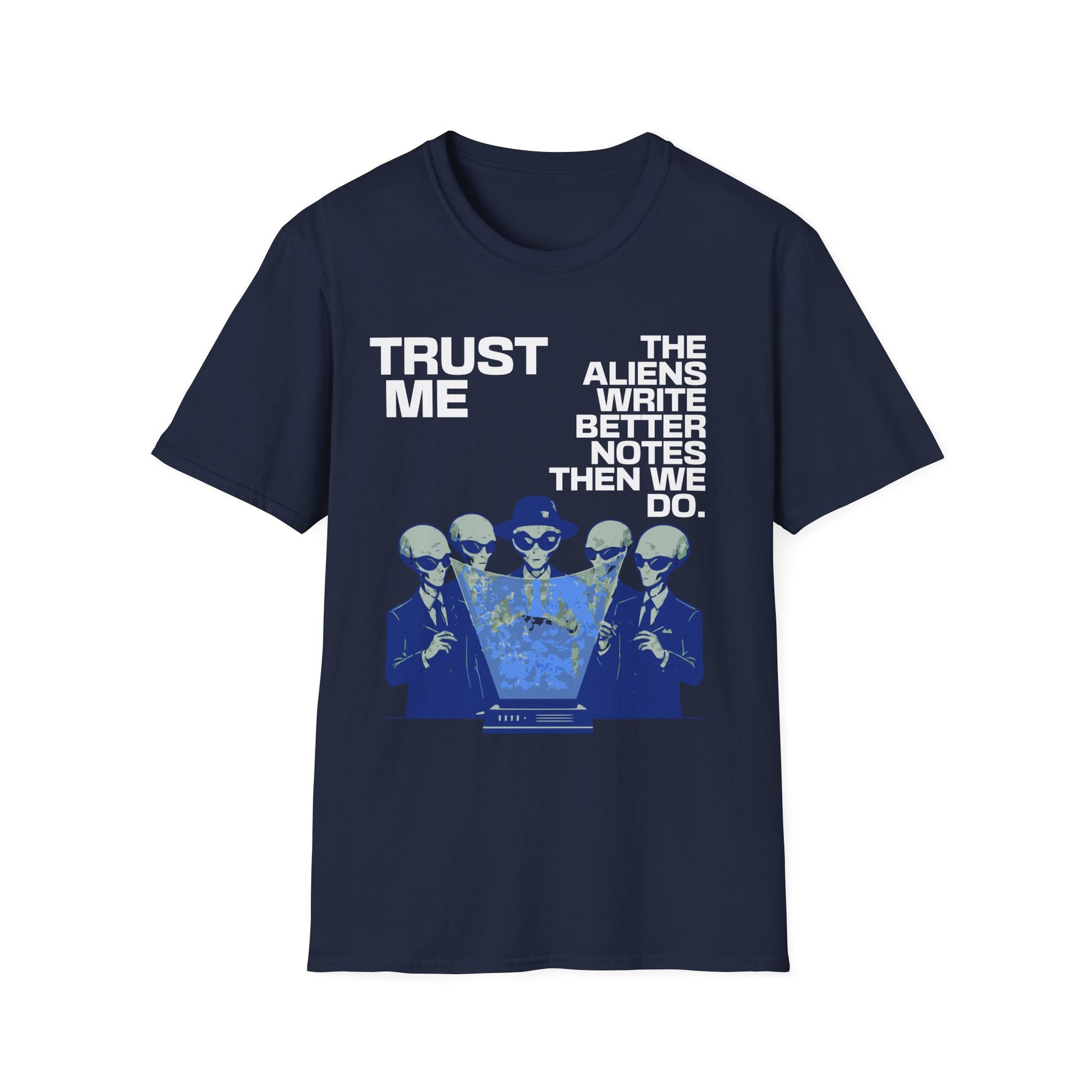 If you’ve ever worked in an office, you already know this shirt speaks the truth. “Trust me, the aliens file better reports than we do.” Featuring everyone’s favorite undercover extraterrestrial—suit, shades, and a suspiciously competent grasp of Excel—this design is for anyone who’s survived both corporate memos and congressional hearings about UFOs.