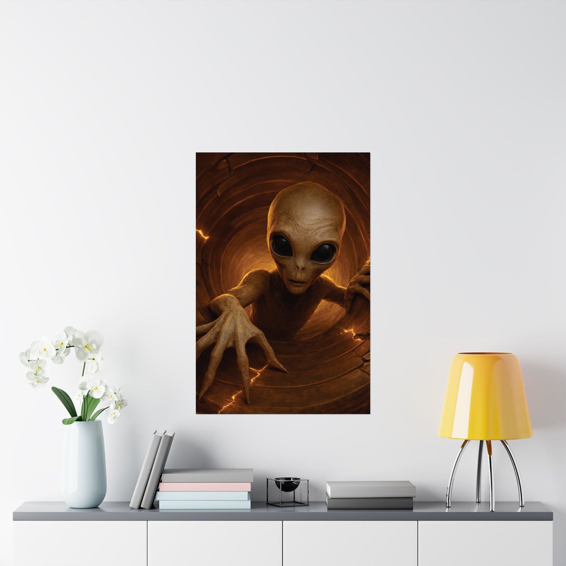 Ideal for collectors of sci-fi art, disclosure-era symbolism, and anyone who prefers their wall art to quietly imply that secrecy was never permanent.