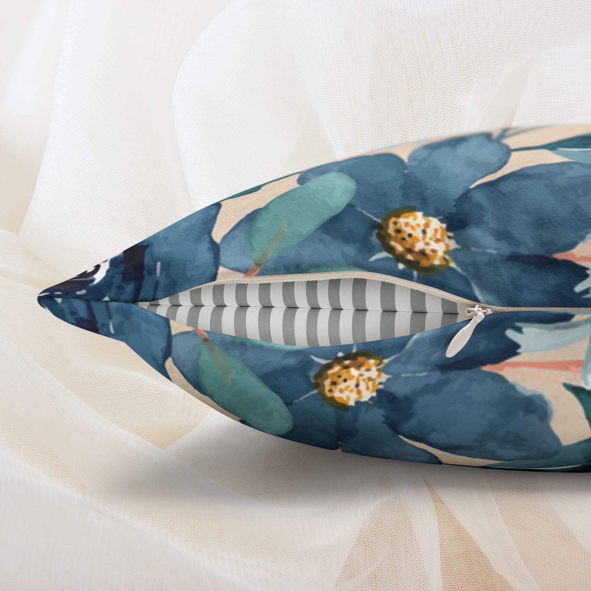 - Decorative throw pillow with floral design and dark humor text